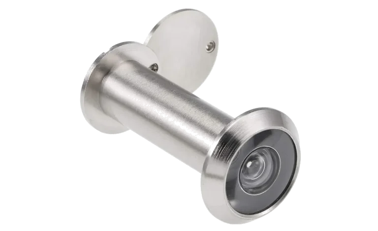 Le judas optique est un dispositif intégré dans le vantail de nos portes blindées. Grâce à son système grand angle, pouvant atteindre 180°, il permet de contrôler visuellement l’extérieur sans ouvrir la porte. Cet œilleton de sécurité offre une vue élargie afin d’identifier clairement une personne qui sonne ou se trouve derrière la porte.