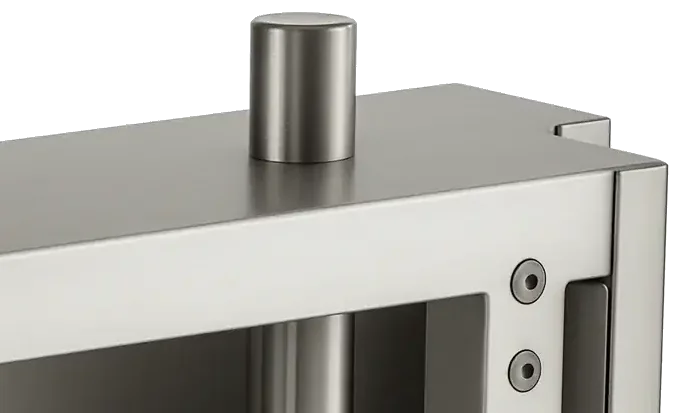 Le point mobile supérieur est un dispositif de verrouillage situé sur la tranche horizontale haute du vantail. Actionné par la serrure, il vient compléter les points de fermeture latéraux en apportant un verrouillage vertical additionnel. Ce système, proposé uniquement sur certains modèles, renforce la sécurité de la porte.